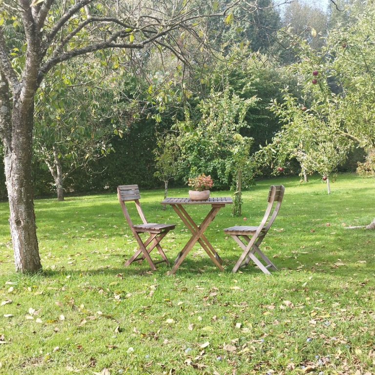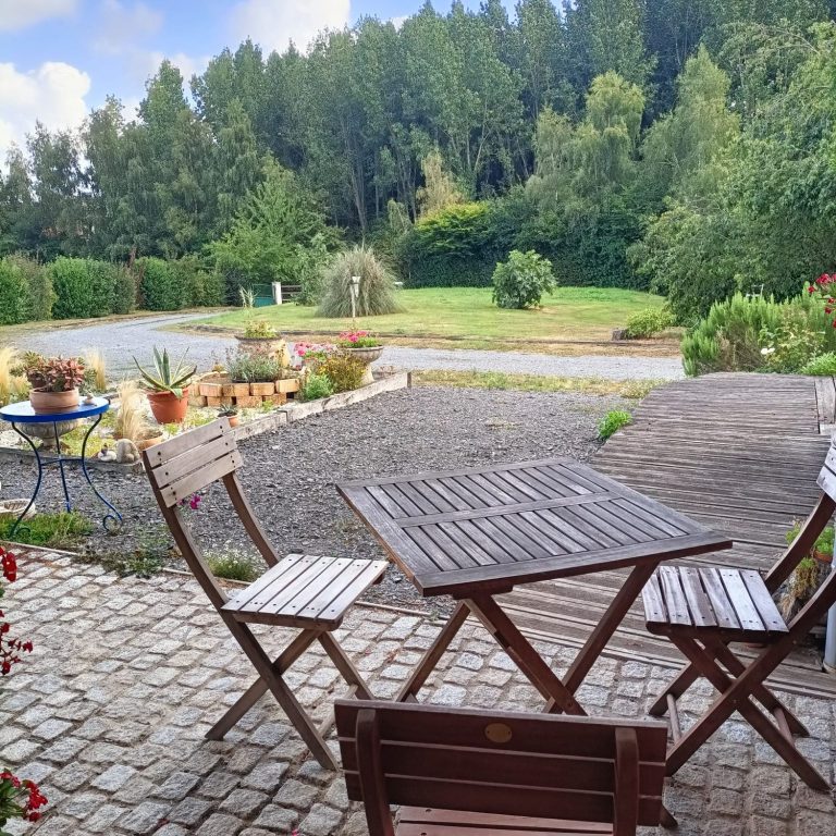 Un petit salon de jardin est à votre disposition pour profiter d’un moment de détente ou partager un repas en plein air.